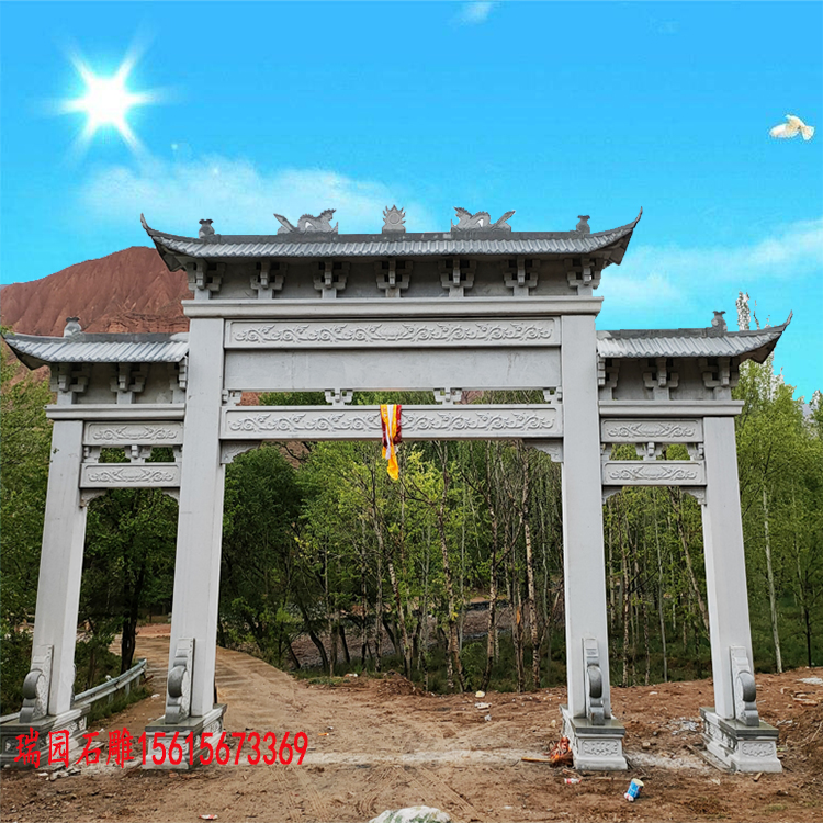 其次,从工艺上看,农村村口门楼牌坊的制作工艺精湛,充满了艺术感。无论是木结构的雕刻,还是石质的结构,都展现了匠人的高超技艺。尤其是石雕雕刻,每一处细节都处理得恰到好处,既保留了传统的韵味,又融入了现代的气息。这种工艺不仅体现了村民们对于美的追求,也反映了他们对于生活的热爱和尊重。