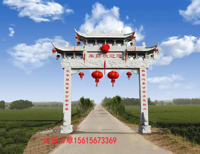 在规划设计层面,成功的村门牌坊往往把握三个关键:一是文化辨识度,如山西皇城相府村的牌坊再现了明清官式建筑特征;二是功能复合性,像四川战旗村的牌坊整合了游客中心、特产展销等功能;三是村民参与度,浙江花园村的牌坊设计方案经过村民代表大会七轮讨论才终确定。中国美院建筑艺术学院院长王澍指出:"当代乡村牌坊应该是有温度的'文化容器',既要承载历史记忆,又要满足现代生活需求。"