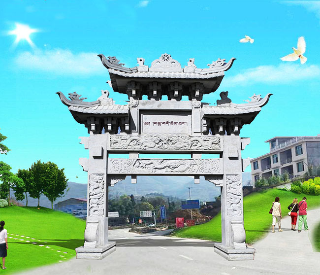 随着美丽乡村建设的推进,农村路口大门牌坊的设计也在不断创新。一些地方开始尝试将传统元素与现代手法相结合,比如在简约的钢结构牌坊上融入传统纹样雕刻,或者在传统石牌坊中加入LED显示屏等现代元素。这种创新既保留了文化传承,又赋予了牌坊新的时代内涵。