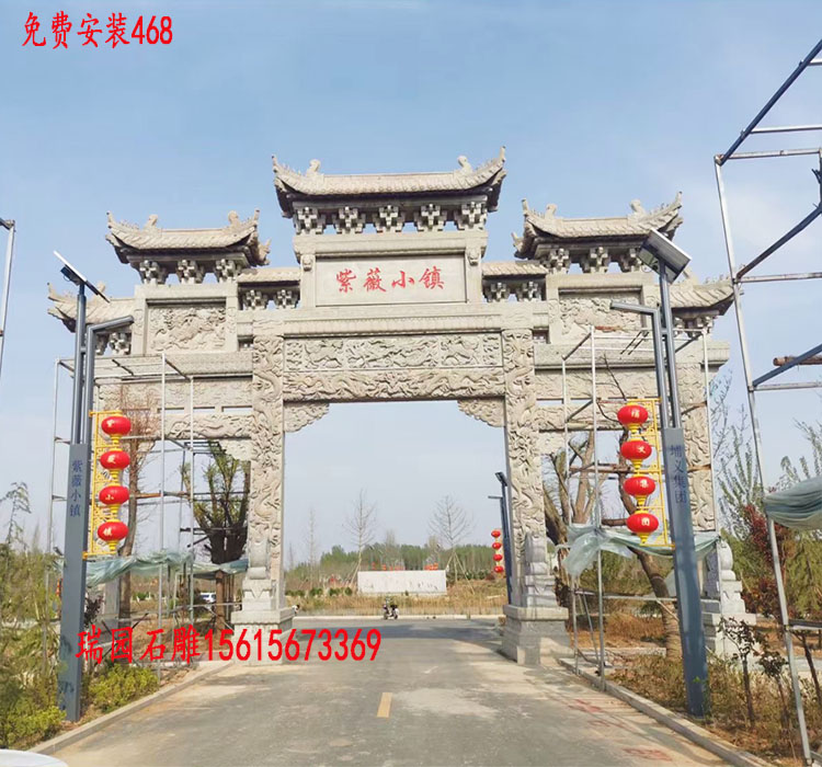 1.深度调研赋能设计:厂家会先开展全维度调研,包括景区文化背景、业态定位、目标客群、周边自然与建筑环境,避免设计与景区调性脱节,确保牌楼“源于景区、融入景区”。2.个性化方案定制:基于调研结果,结合传统牌楼形制(如冲天式、楼门式、柱出头式)与现代设计理念,提供专属原创方案,涵盖造型设计、材质选型、纹样创作、色彩搭配等全维度内容,杜绝照搬模板的同质化问题。3.文化元素落地:将抽象的地域文化、景区特色转化为具象的设计语言,例如把当地历史名人故事、非遗技艺流程、自然景观特征融入雕刻与装饰,让牌楼成为可解读、可感知的文化载体。