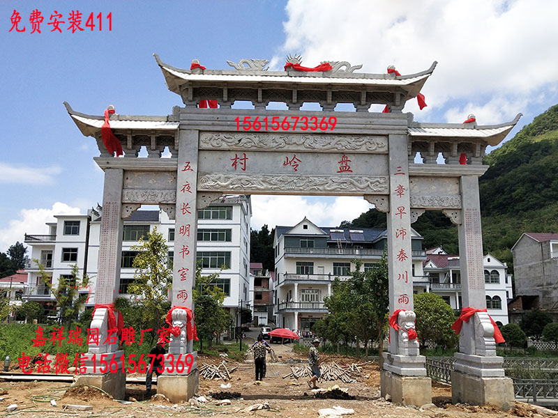 更深刻的是,美丽乡村大门牌坊承载着村民的归属感与幸福感,是乡村振兴的“精神图腾”。对在外打拼的游子而言,远远望见村口的牌坊,便知“家到了”,那熟悉的纹路与字样,是化解乡愁的温暖符号;对留守乡村的村民来说,牌坊见证着村庄的蜕变——道路变宽了、房屋变新了、产业兴旺了,而牌坊始终矗立在村口,成为乡村发展的“见证者”与“守护者”。如今,越来越多的乡村将牌坊与乡村旅游结合,以牌坊为起点,串联起村内的田园风光、民宿聚落、特色产业基地,让牌坊成为乡村旅游的“打卡地标”,既打响了乡村品牌,又带动了村民增收,让传统文化资源转化为乡村振兴的内生动力。