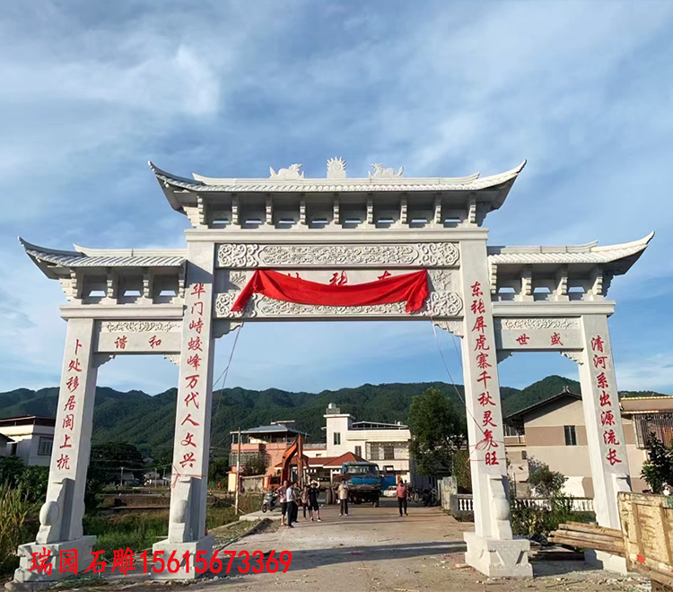 牌坊的颜色也更加多样化,除了传统的石材颜色外,还可以根据乡村的整体风格和环境选择其他颜色,如白色、灰色、黑色等,以达到与周围环境相协调的效果。