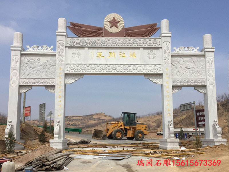 主题文化式牌坊石门则是将乡村的特色文化主题融入到牌坊的设计中。这种牌坊往往具有很强的针对性和代表性,能够让人们一眼就了解到村庄的独特之处。