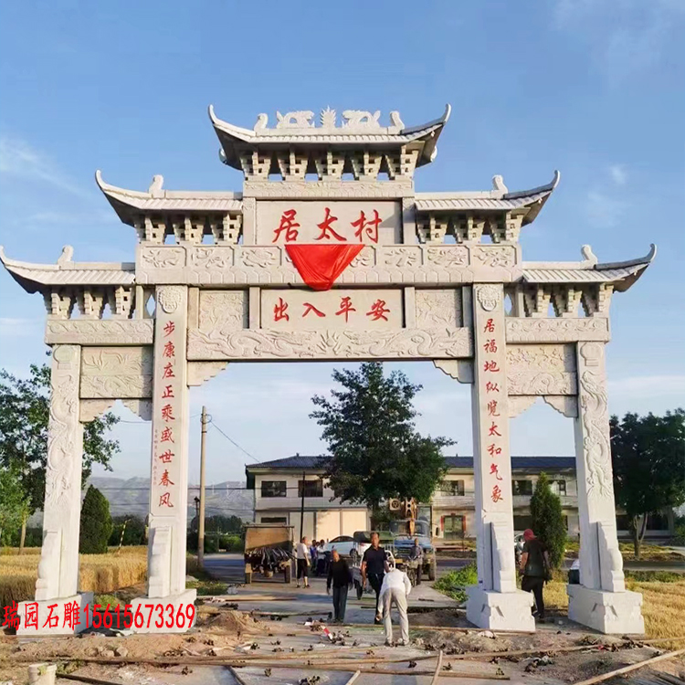 一座宏伟的村大门牌坊,往往能够成为村庄的亮丽名片,提升村庄的整体形象。当外来客人看到这座巍峨的牌坊时,往往会对村庄产生良好的第一印象。这种形象的提升不仅有助于吸引外来投资和游客,也为村民带来了自豪感和归属感。村民们会更加珍视自己的家园,积极参与村庄建设和发展,共同推动村庄的繁荣与进步。牌坊的修建,不仅是对村庄外在形象的塑造,更是对村庄内在精神的提炼和升华。它让村民们在自豪中找到了归属感,在归属感中激发了责任感,从而形成了推动村庄发展的强大动力。