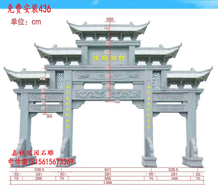 现代乡村村口门楼作为村庄的标志性建筑,不仅承载着地域文化特色,还兼具实用功能和审美价值。近年来,随着乡村振兴战略的推进,各地村口门楼的建造呈现出多样化趋势,既保留了传统元素,又融入了现代设计理念。以下从样式分类、尺寸规范、材质选择及文化内涵四个方面,系统梳理当代村口门楼的建设特点。