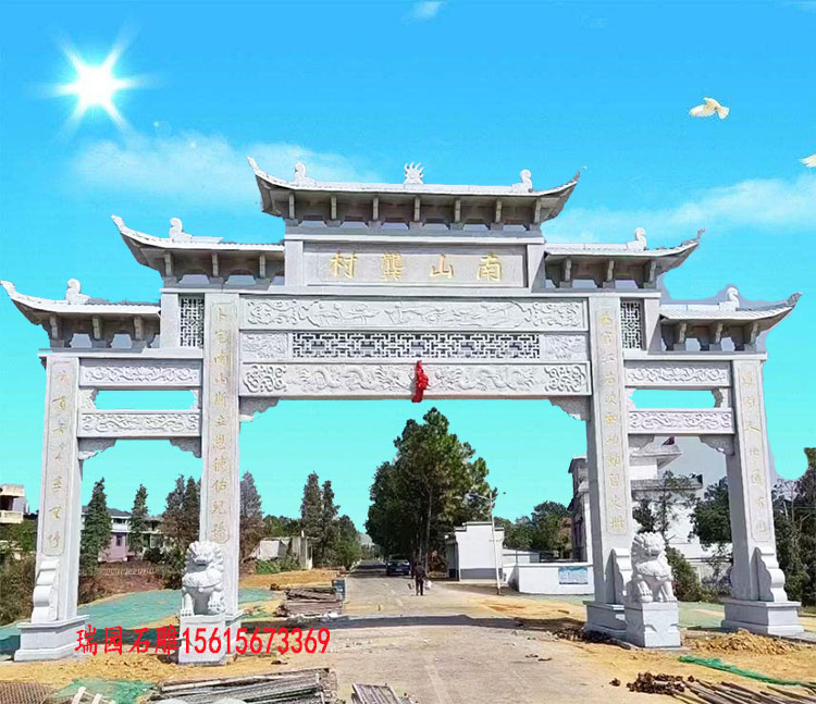 在中国传统建筑艺术中,牌坊作为一种独特的文化符号,承载着丰富的历史内涵和地域特色。进村牌坊作为村庄的门户标志,不仅具有导向功能,更是村落文化的重要载体。近年来,三门五楼石牌坊因其庄重大气的造型和深厚的文化底蕴,成为许多乡村建设的样式。本文将围绕这一主题,从样式特点、文化寓意、设计要素等方面进行详细阐述。