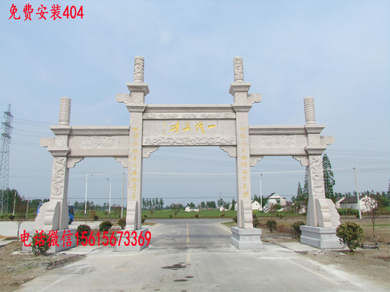 农村路口大门牌坊的样式多种多样,但总体上可以分为传统风格和现代简约风格两大类。传统风格的牌坊多采用仿古设计,以石材为主要建筑材料,造型上借鉴了古代牌坊的经典元素。这类牌坊通常由立柱、横梁、斗拱和屋顶等部分组成,整体结构庄重大气。立柱上常雕刻有对联或吉祥图案,横梁部分则多题写村名或具有地方特色的标语。屋顶部分多采用歇山顶或悬山顶,檐角微微上翘,展现出中国传统建筑的优美曲线。这种风格的牌坊适合历史文化底蕴深厚的村落,能够很好地与周边古建筑相协调。