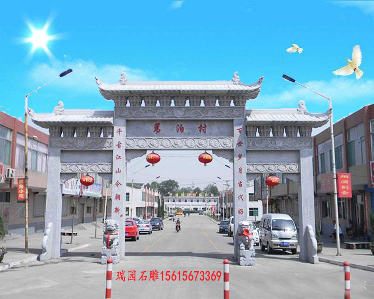 另一经典为仿古简约风格。在传统形制基础上简化繁复装饰,保留核心结构。石料选用更注重天然质感,雕刻以线条勾勒为主,少了浓墨重彩的纹饰,多了清雅通透的格调。这类牌坊门楼适配现代乡村布局,既呼应传统,又不显得厚重,成为村口、祠堂、景区入口的热门选择。