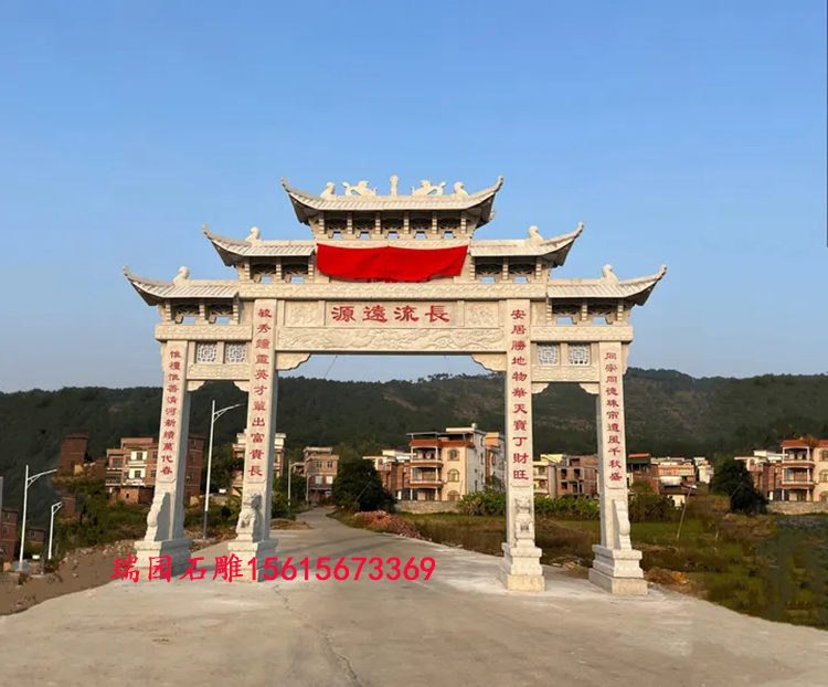 石牌坊作为中国传统建筑文化的重要载体,不仅是村庄入口的标志性景观,更承载着凝聚乡情、彰显文脉的重要意义。在村庄石牌坊的建设过程中,款式的选择需兼顾地域文化特色、村庄整体风貌及实用功能,而修建环节的细节把控则直接决定牌坊的质量与耐久性。以下将详细介绍村庄石牌坊的几种经典款式及修建过程中的核心注意事项。