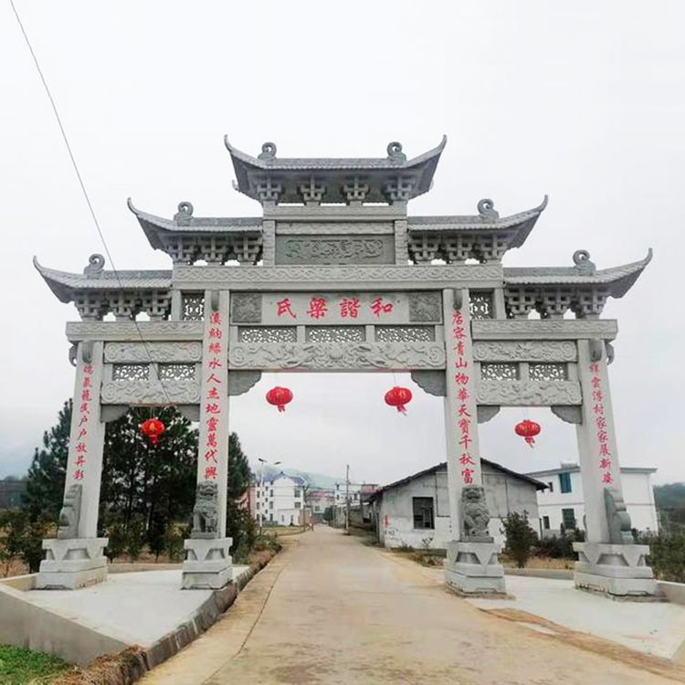 总之,乡村入口石牌坊、新农村石牌楼和古建景区石门楼作为代表性的建筑,其造型大气美观。乡村入口石牌坊是乡土风情的门面担当,新农村石牌楼展现了乡村经济发展成果,古建景区石门楼融合了历史与美学的完美结合。而石牌坊的大气美观,则离不开石材的艺术之美。这些石牌坊和石门楼不仅是乡村的标志物,更是对传统文化的传承和保护。它们以其独特的外观和内涵吸引了越来越多的游客和乡村爱好者。