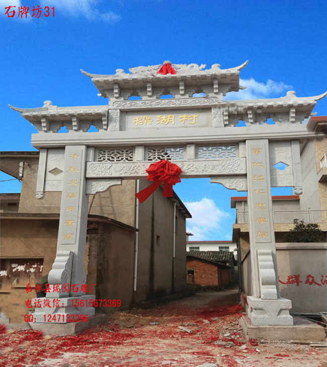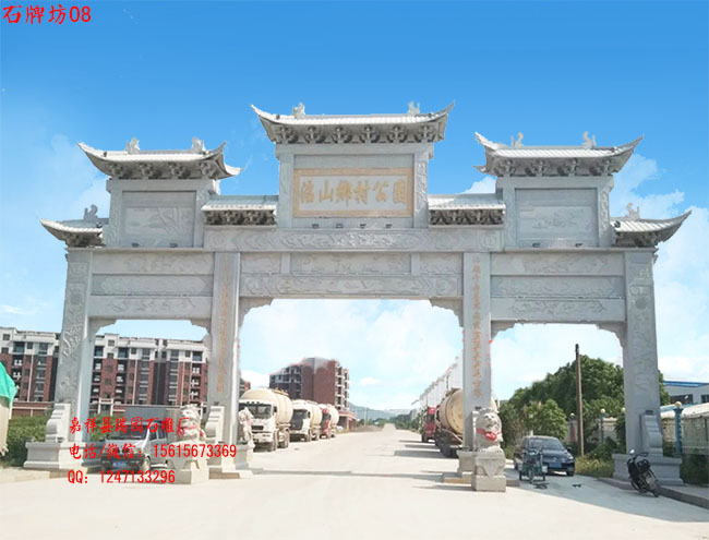 农村村头石牌坊样式大全;在广大新农村村庄兴起了村头石牌坊的修建,我们可以普遍的看到在各个领域的农村村庄的村口都建有村头石牌楼,村头牌坊是农村的地名标识,村庄入口的标志,装饰美化农村的景观代表,展现各地文化风俗的形态建筑,所以说选择到合适的农村村头石牌坊样式是很重要的问题。农村牌坊厂家详解各种村头石牌坊样式。