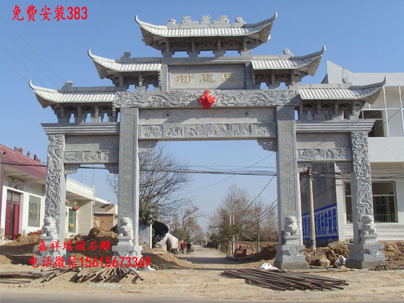 乡村牌坊大门效果图大全;在美丽乡村建设中,一座雕刻精美工艺精湛的乡村牌坊大门,可以极大地提升村庄的文化底蕴。从石牌坊厂家提供的乡村牌坊大门效果图来看,常见的乡村石牌坊样式,以一门石牌坊和三门石牌坊为主,每一座牌坊大门效果图上都雕刻有精美好看又有吉祥寓意的浮雕图案。