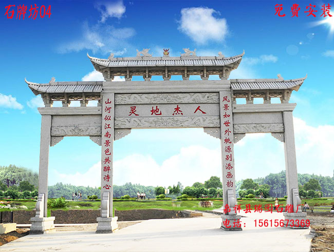 村口石雕门楼牌坊建造步骤;在美丽乡村建设中,村口石雕门楼牌坊作为一个建筑小品,其空间结构严谨,造型丰富,讲究韵律。雕刻工匠们对石牌坊进行形象设计时,根据创作的需要,在建造上讲究选址、造型、雕刻、用料等,总体布局要求自然得体,并与环境和谐,村口石雕门楼牌坊的镶嵌和榫卯结构,还需要符合结构承重力学的要求。通过石牌坊厂家我们了解到,村口石雕门楼牌坊大门的建造,主要分为如下步骤。