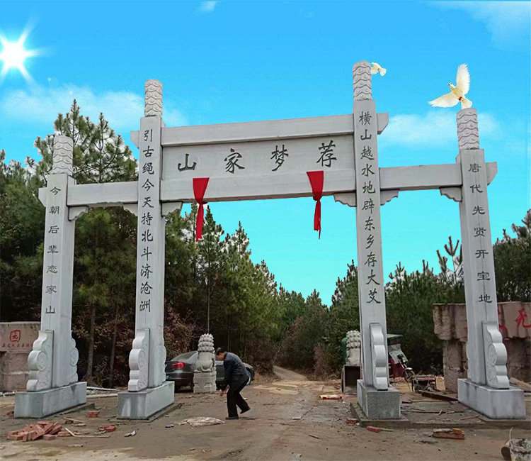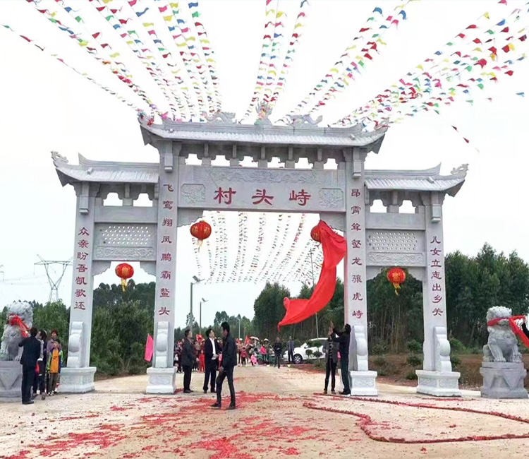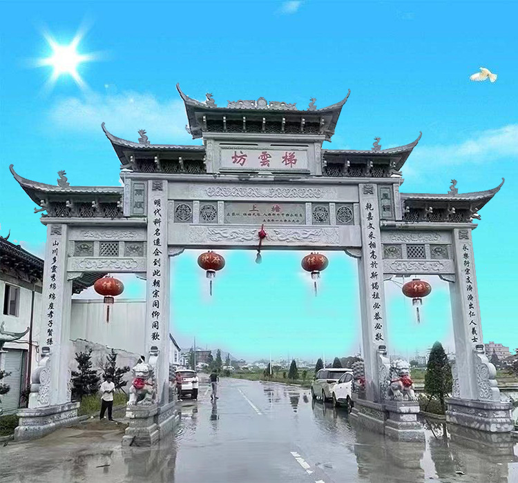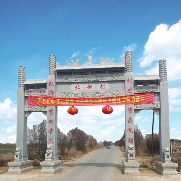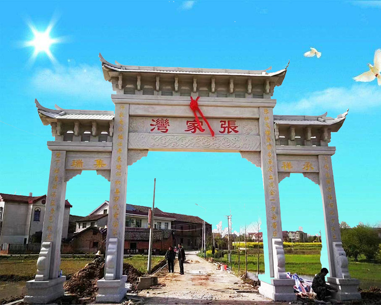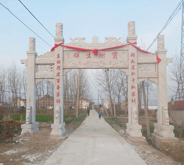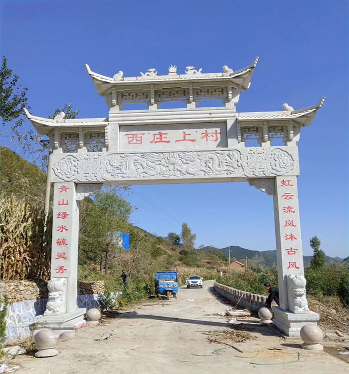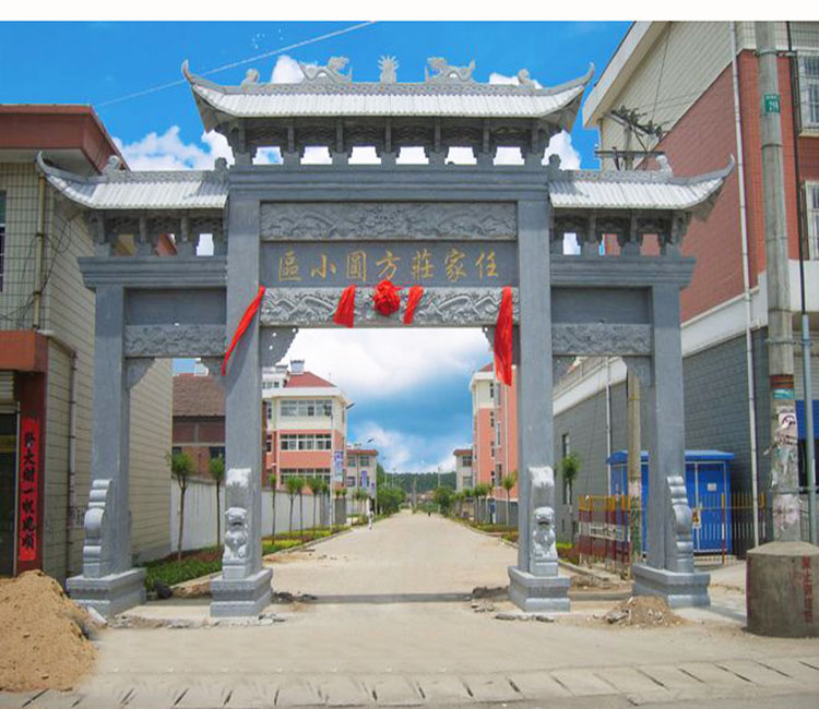 农村石牌坊修建成为村子入口地名标志大门建筑;很多的农村都建有石牌坊,而我们在修建农村牌坊的时候,具体的位置是非常重要的,有些地方可能并不清楚我们修建在哪些地方比较适合,其实大家一定要清楚,这些东西的安装和使用有着一定的历史传统,而且其中也都会存在着一些差别。农村牌坊修建在哪个位置好?大家都知道牌坊门楼是用*石材雕刻的,他不仅是一个门面工程也是一个很好的地名标志牌坊,所以农村修建石牌坊的位置,要在明显显眼的地方,他能够让路人看到村庄的名字,所以农村牌坊修建在村口是比较好的.