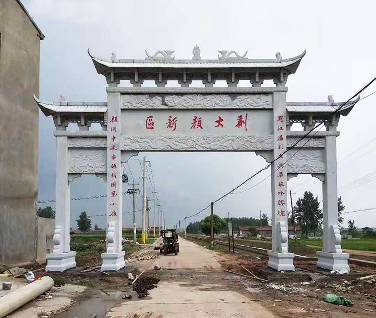 综上所述,农村村口石头牌坊以花岗岩和青石为主要材质,在新农村建设中发挥着重要的作用。它们不仅是历史文化的传承与延续,也是村庄环境的提升与美化,更是社会意义的象征与凝聚。同时,农村村牌坊还为美化乡村和开发乡村旅游资源提供了新的机遇。因此,在新农村建设过程中,应充分发挥农村村口石头牌坊的重要性和魅力,为农民创造更美好的生活环境。