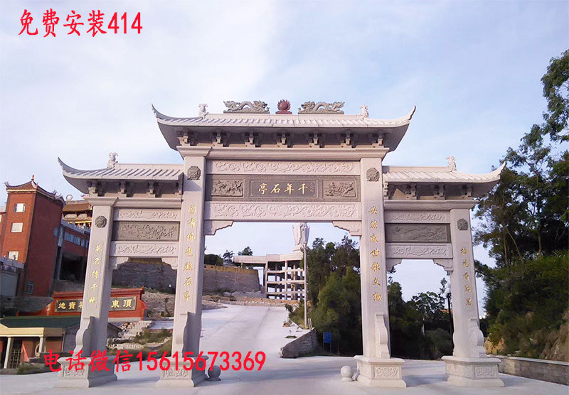 在乡村振兴战略实施过程中,石坊门的建设呈现出鲜明的地域特色创新。广东潮汕地区的"四点金"式石门楼,在保持"双狮戏球"传统纹样的基础上,新增了5G基站隐藏式设计;安徽宏村则在月沼湖入口处建造了可旋转的"二十四节气"石雕门框,随着季节转换展示不同农事场景。这种传统与现代的对话,在四川战旗村的实践中更为突出——他们的"乡村振兴示范门"采用3D扫描技术复刻川西林盘建筑元素,门楣处的电子屏实时显示村务数据,成为数字乡村建设的可视化窗口。
