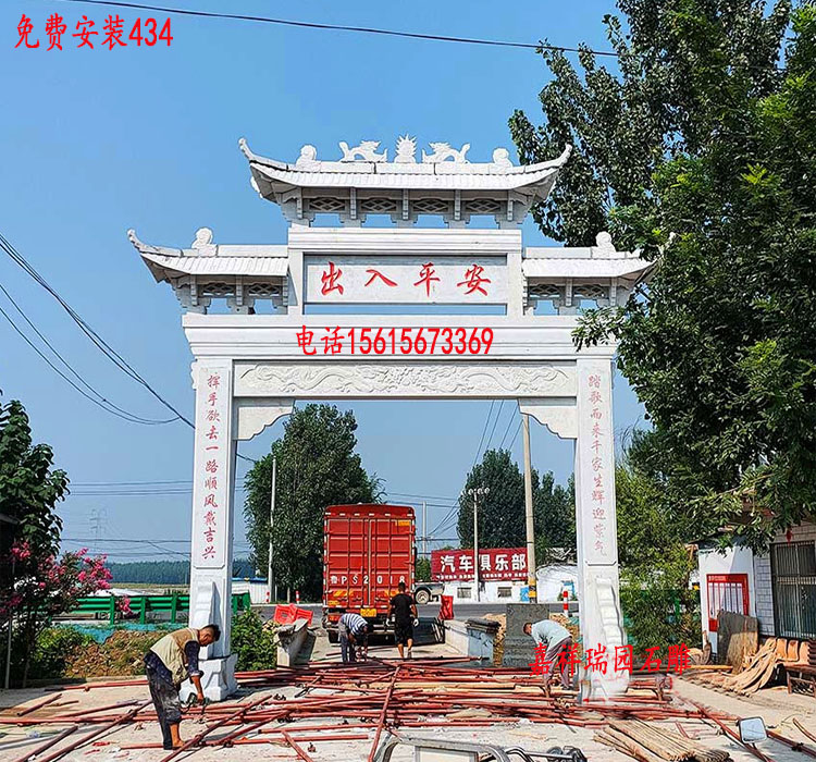 结构创新方面,现代工程技术的引入使门楼建造有了更多可能性。山东曲阜某村门楼采用钢筋混凝土框架外包石材的复合结构,既保证抗震性能,又维持传统外观。在四川眉山的案例中,我们为门楼加装了LED轮廓照明系统,通过编程控制实现节日模式的灯光变化,使传统建筑在夜间也能成为村落的视觉焦点。门楼顶部可设置太阳能板,为村口监控设备供电,实现功能拓展。