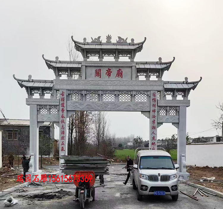 祠堂石门楼的建筑风格多样,不同地区的石门楼呈现出不同的特色。例如,徽派建筑中的石门楼以精美的石雕和砖雕著称,门楼上常雕刻有吉祥图案、历史故事或家族训诫,体现了徽商文化的精致与儒雅。福建、广东等地的石门楼则多采用红砖和花岗岩,结构宏伟,装饰华丽,反映了沿海地区开放包容的文化特点。而江浙一带的石门楼则更注重线条的流畅和比例的协调,展现出江南水乡的婉约与典雅。