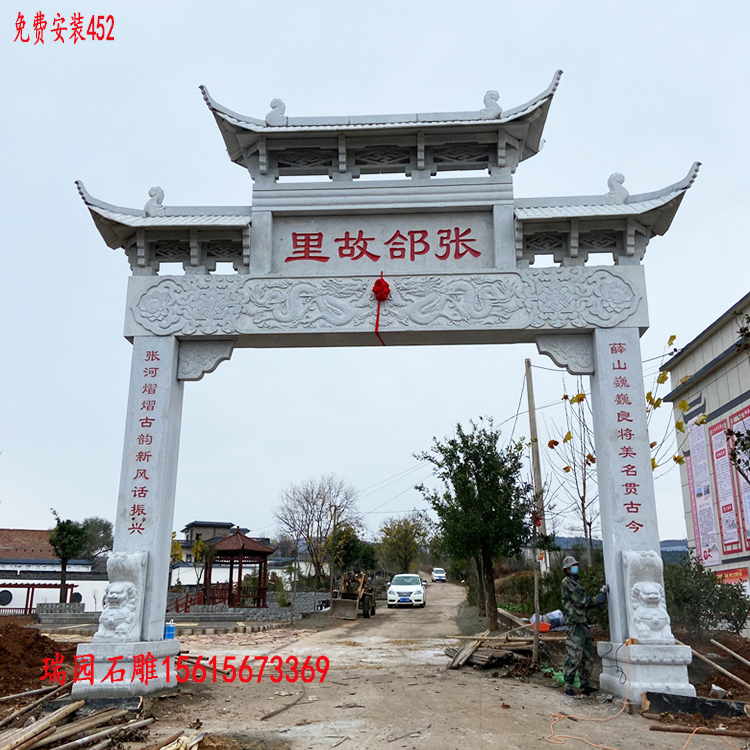 额枋作为石牌楼的“脸面”,是图案布局的核心承载区,多采用“主图+辅图”的组合模式。主图通常选取具有重大象征意义的题材,如“百子图”“家族迁徙图”“耕读渔樵图”等,直观传递宗族传承与村落精神。例如湘中地区的曾氏牌楼,额枋主图以浅浮雕再现了曾氏先祖从江西迁徙至湖南的历程,人物神态、车马细节栩栩如生,两侧辅以“祥云纹”衔接,既突出主题又兼顾美感。对于宗族意识浓厚的村落,额枋主图还会镌刻“四世同堂”“五子登科”等场景,搭配“回字纹”“万字纹”作为边框,强化吉祥寓意的同时,体现儒家“慎终追远”的伦理观念。