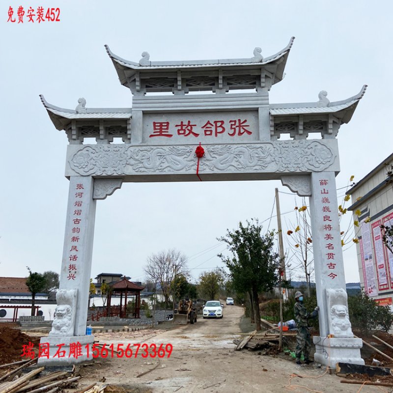 农村村门口石牌坊与村庄村口石牌坊安装案例图