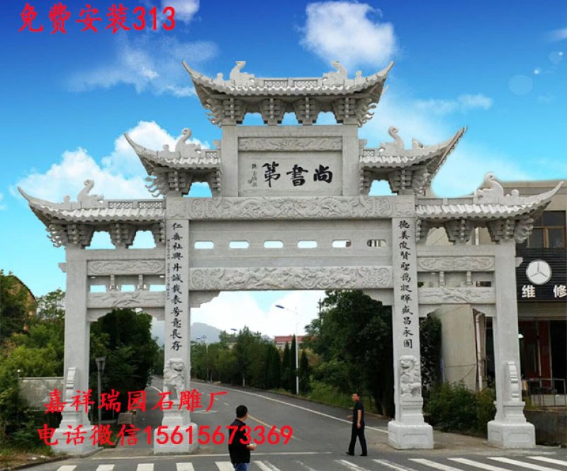 农村石雕村门牌坊雕刻样式