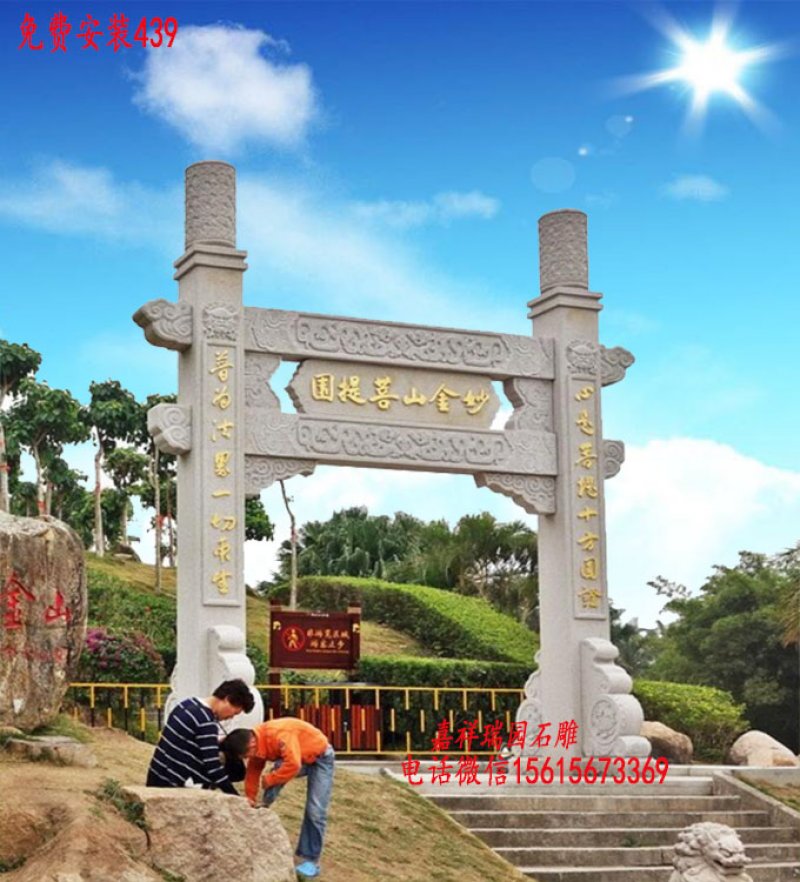 菩提寺石雕牌坊_石牌坊安装完成