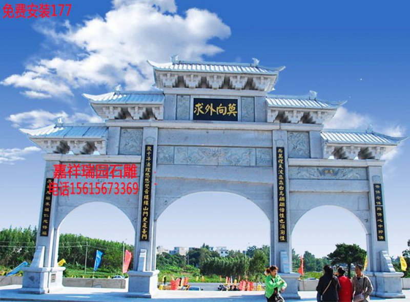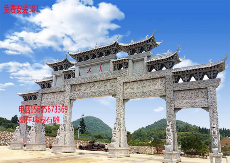 村口大门楼常用尺寸12米三门五楼石牌坊图片