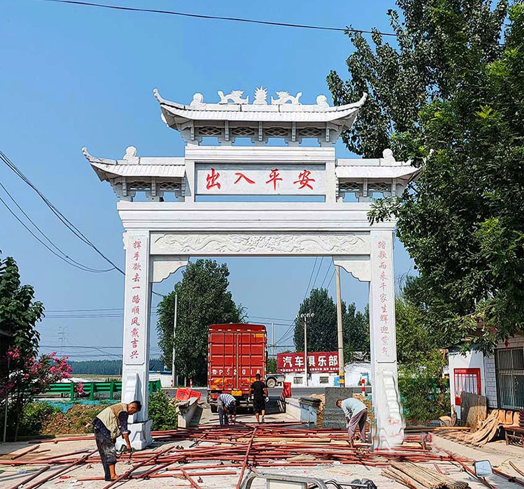 很多的农村都建有石牌坊,有些地方可能并不清楚我们修建在哪些地方比较适合,其实大家一定要清楚,这些东西的安装和使用有着一定的历史传统,而且其中也都会存在着一些差别。这样的村庄石门牌建设的过程当中,和原本的一些牌坊建设有着一系列的好处,它可以持续性的进行农村的发展,同样在技术上也能够确保符合农村发展的相关的文化内涵。农村石牌坊修建不仅是中国几千的文化传承,也是社会发展的象征,也代表着农村的发展气象和农村整体实力的表现。