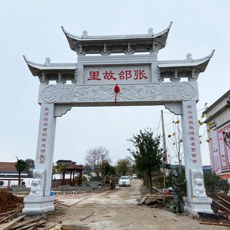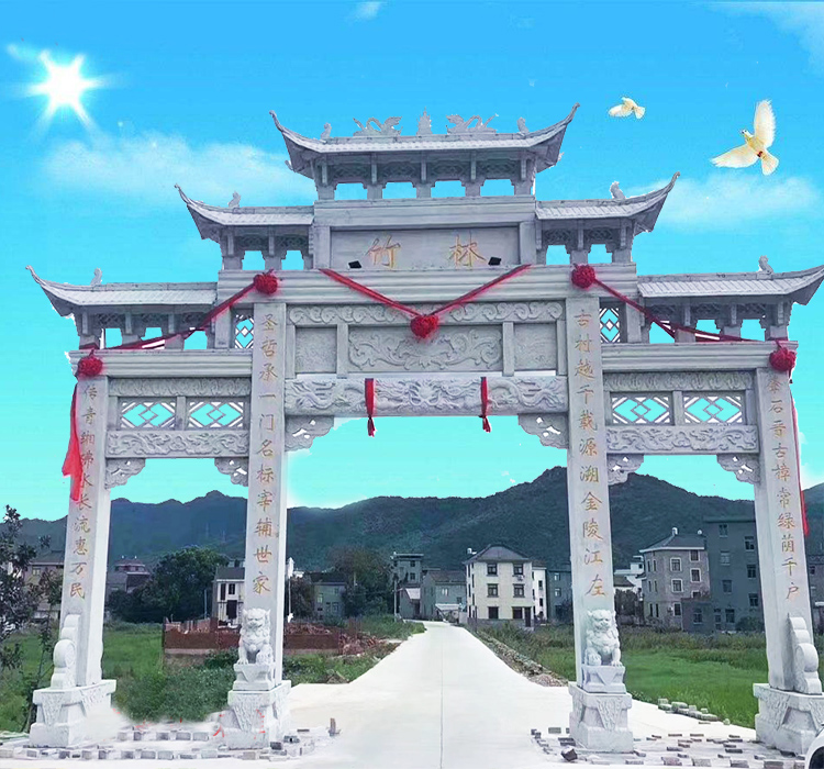 新农村门楼石牌坊成为村口标志性的建筑;中华文明源远流长,在我国悠久的历史发展中,各地建造了很多具有独特风格的建筑形制,其中门楼牌坊就非常具有代表性。新农村门楼石牌坊经过漫长的演变发展,成为了中华民族的标识,具有独特文化价值。在美丽乡村建设中,在村口建造新农村石门楼牌坊、进村石牌楼大门,不仅可以作为村庄的标志,还可以增加乡村的文化底蕴。