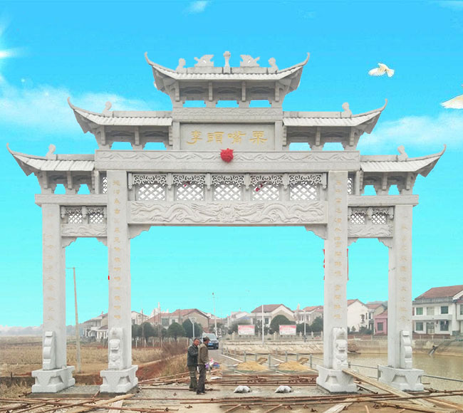 农村景观石牌坊,村头祠堂石牌楼和大理石石门楼作为农村建筑中常见的石制建筑物,承载着丰富的文化内涵与历史传承。他们的独特形式与精湛雕刻,无不彰显出中国古代村落丰富且独特的文化遗产。通过保存和传承这些建筑物,我们将能够在当代社会中感受到中国古代乡村文化的独特之美。