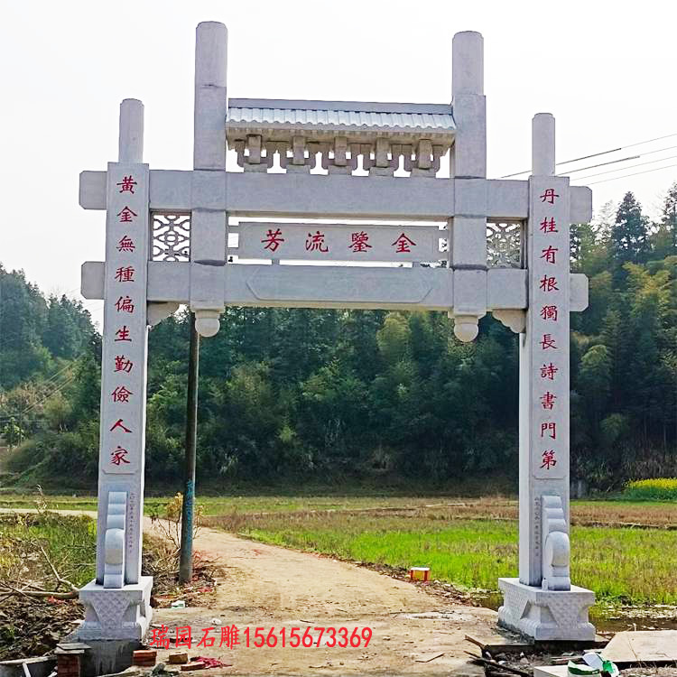 总之,墓地石牌坊和新农村改造花岗岩石门楼的关系紧密,花岗岩石门楼作为一种美观、耐久、防风化的门楼选择,将在农村改造中发挥重要作用。随着农村改造的深入,相信这种美观且不易风化的墓地石牌坊将在新农村环境中越来越被广泛应用。
