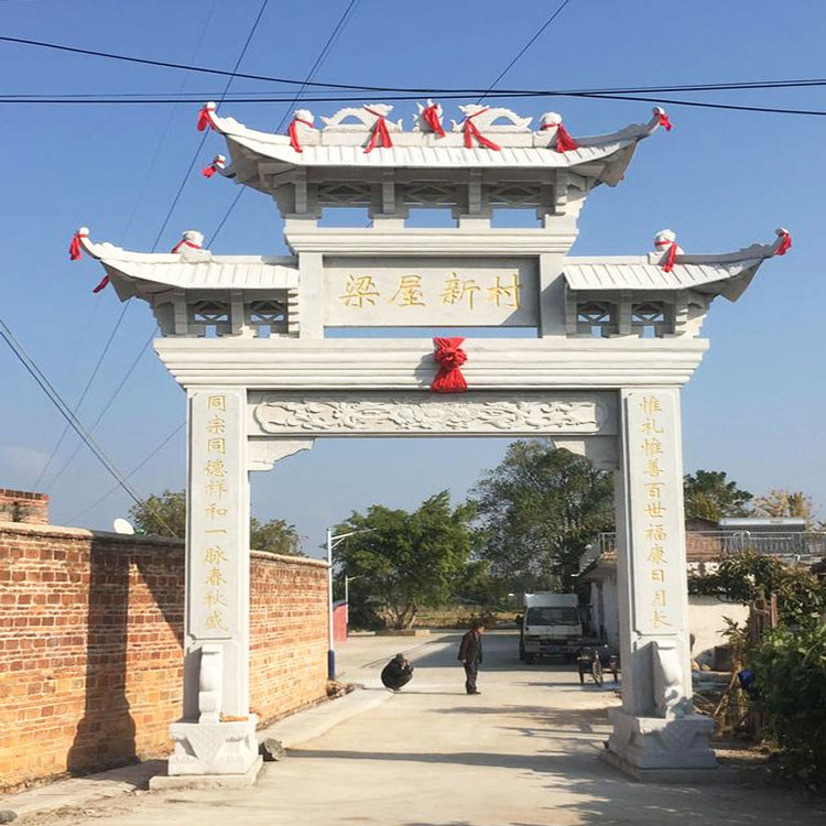 这类牌坊多见于一些经济发展较快的农村村庄,如沿海地区和一些经济特区。它们多采用石头、砖头和水泥等现代材料,造型简洁大方。颜色鲜艳,总体呈现一种现代化的建筑风格。