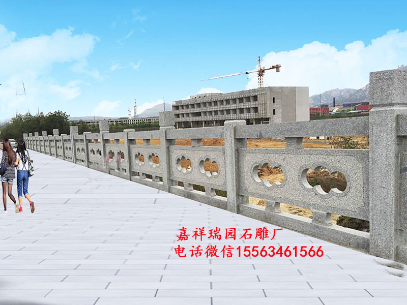 2、花岗岩河道石栏杆的造型选择。一般来说在河道两旁设立石雕栏杆是为了防护安全措施,花岗岩栏杆的造型也有多种可选,除了上面提到过的有挡板的石栏杆之外,也有条柱状的,相对比较现代感设计的石栏杆,这种石栏杆造型相对简单普通,雕刻的展现形式比较少,因此出厂速度快,主要是打磨光滑,粗细均匀为主,因此相比其他浮雕类挡板造型的价格要一些,需要注意的是,在这类石栏杆的尺寸上要稍加注意,柱子和柱子之间的空格不要太大,防止意外产生。挡板式的花岗岩河道石栏杆为多见,一般在挡板部分雕刻图案,形象生动,图案造型多变,可以根据需求选择,更加彰显石栏杆的美。