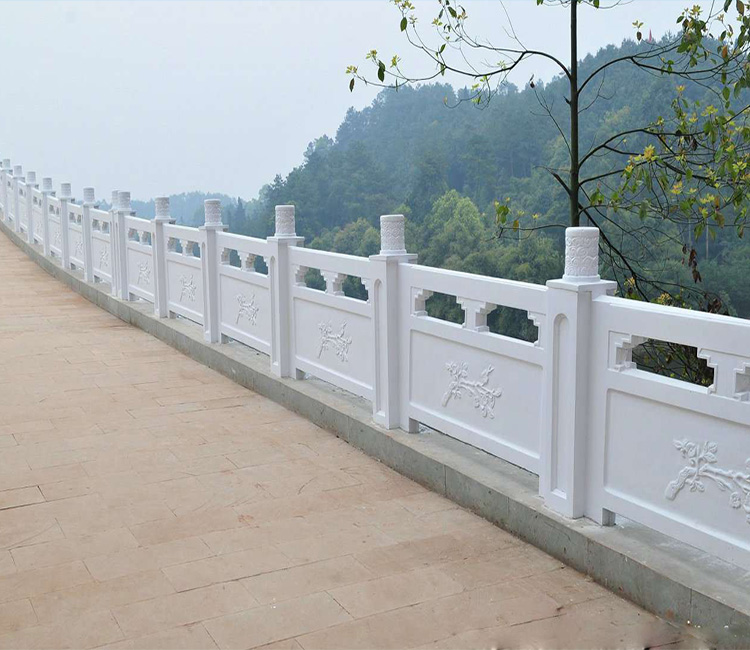 景观桥上连续式栏杆图片;连续式栏杆应该也不会陌生,在各大建筑领域中应用很多,主要以立柱、柱头、栏板、抱鼓以及垫块组成。有些地方在雕刻时候会采用局部镂空形式,雕刻设计上也都比较细腻讲究,造型多样美观,这种栏杆图片样式在景观桥上使用量也很多。