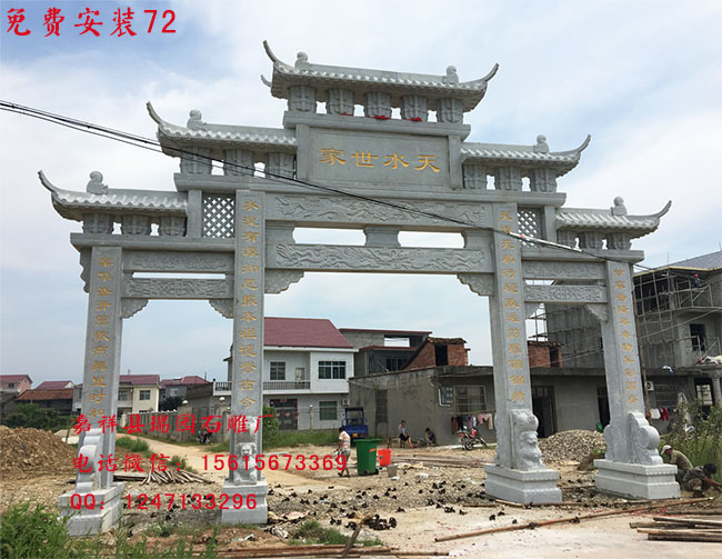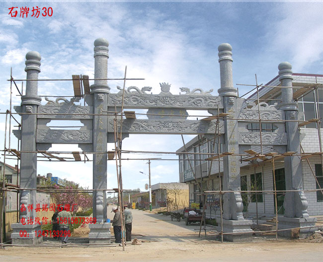 随着我国社会主义新农村建设越来越多,村庄入口牌坊作为社会主义新农村建设成功的标志性建筑,越来越多的乡村入口处修建石牌坊石牌楼,提醒着人们已经来到社会主义新农村的村口,从石牌坊厂家的设计制作中已经让人们感受到牌坊与新农村的结合。在众多不同材质的牌坊中,经历了悠久历史的风吹雨打,见证了历代的变化,也唯有最具气势与质感的农村牌楼了。村庄入口牌坊雕刻建造是一种艺术,人们的想象等空间都被放在了石头上面,是人们赋予了石头生命和艺术的永恒,石雕的好处就是不管年代长短,它都不会变,历史的尘埃越多越能积累石雕的艺术价值,这也是现在人们选择农村牌楼的重要原因。