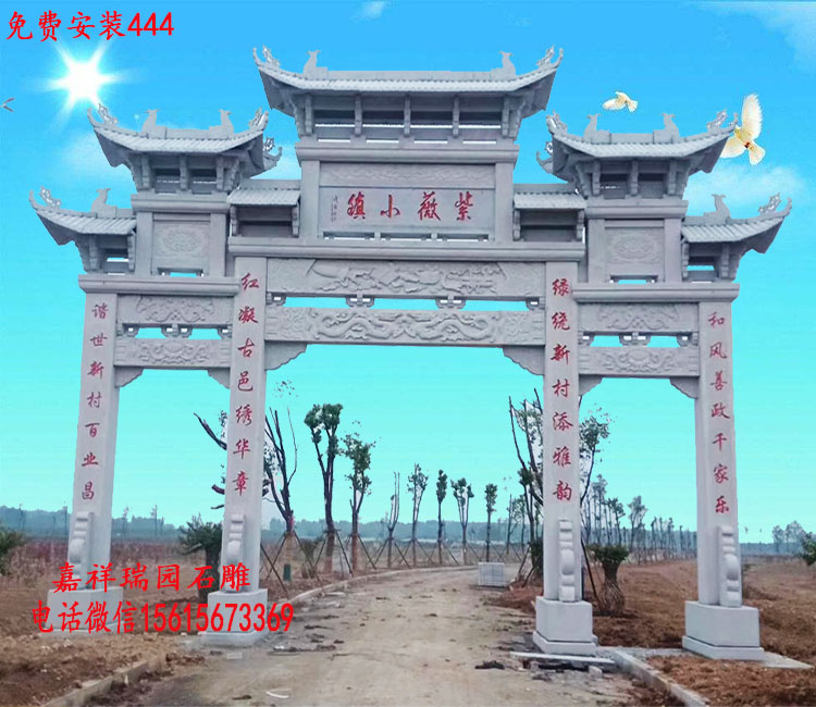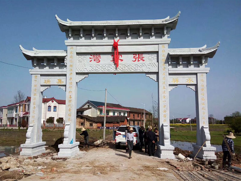 其实现在我们越来越多的能够在一些农村或是小镇的入口看到这类矗立的美丽乡村入口牌坊,除了能够体现乡镇的美观和水平之外,更可以说是一种地标性的建筑,除此之外,美丽乡村入口牌坊村口石门楼还有祛邪镇宅的作用,在古时候,门楼是结合各类学而建造的,预示着整个村子乡镇的平安等。