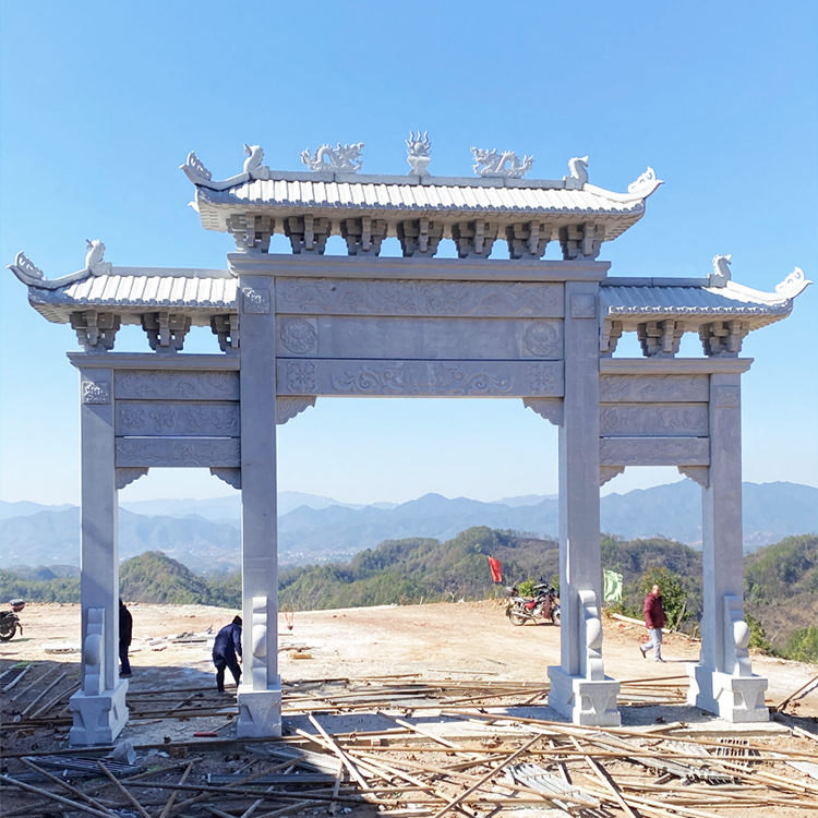 2. 精湛的雕刻工艺:一门三门花岗岩牌楼在设计上经常会加入丰富的雕刻元素,如花卉、动物等,这些雕刻既美观又富有创意,体现了民族传统文化与地方特色。