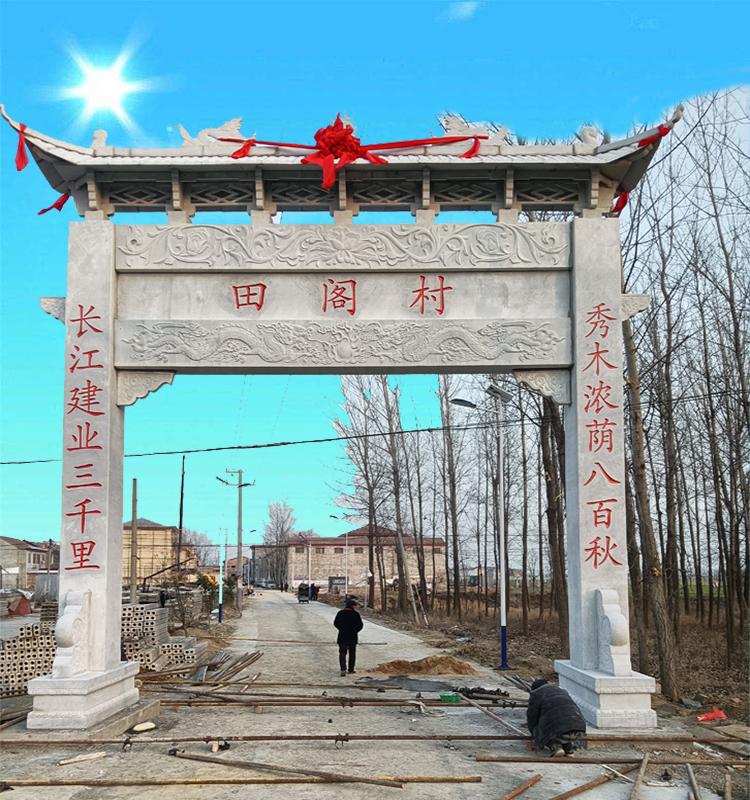 在现代社会中,城市化的进程不可避免地导致农村的发展趋势逐渐消失。然而,许多人仍然渴望回归自然,回归农村的宁静与纯朴之感。因此,新农村的建设成为一个必然的趋势,而新农村石牌坊作为农村美丽乡村入口装饰的重要组成部分,被广泛运用。
