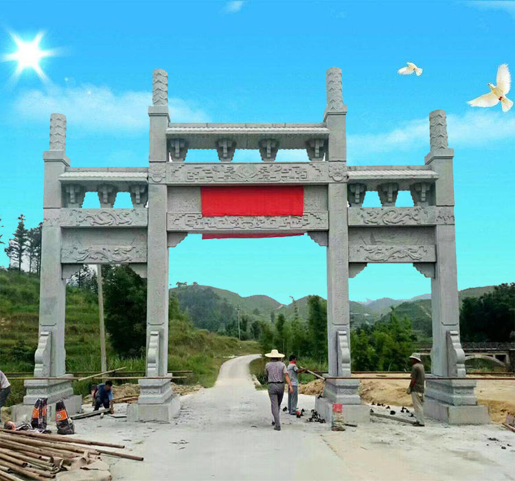 仿古陵园石牌坊大门不仅能勾起人们对历史的回忆,更将传统文化融入现代生活中。这种牌坊常用青石、花岗岩等材料,整体色调淡雅,雕刻着各种祥云、花卉、龙凤等吉祥图案,给人一种庄重古老的感觉。