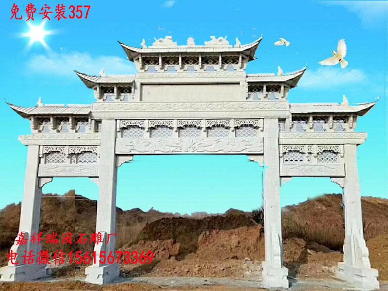 那么,农村村口建造石头大门牌坊究竟有哪些吉祥作用呢?首先,它作为村庄的标志和门户建筑,为村民提供了一个明确的归属感和认同感。每当人们看到这座石头大门,就会想起自己的家乡,想起那些熟悉的风景和人物。其次,石头大门牌坊还寓意着吉祥和幸福。通过精湛的雕刻工艺和寓意深刻的纹饰,人们将美好的愿景和期望寄托在这些建筑之上,希望村庄能够繁荣昌盛、村民能够安居乐业。